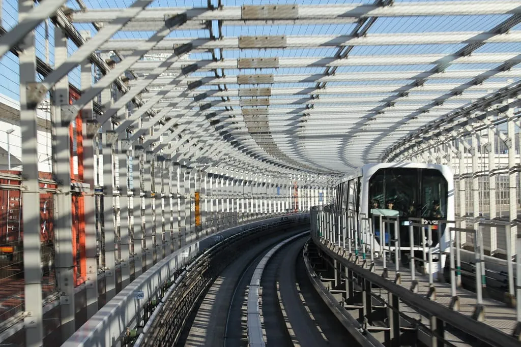 Yurikamome is Tokyo’s first fully automated, driverless transit line, linking the city’s Shimbashi district to Toyosu via the man-made island of Odaiba. The 14.7 km route runs on an elevated concrete guideway with rubber-tired trains, offering a futuristic ride above Tokyo Bay. Opened in 1995, this line was built to develop the waterfront and is named after the black-headed seagull (“yurikamome” in Japanese), Tokyo’s official city bird that frequents the bay.